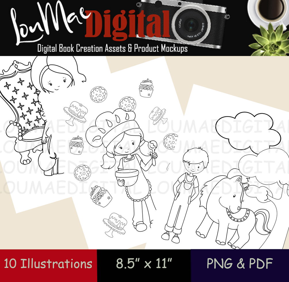 KDP Colouring Pages 8.5 x 11 inch 10 pages (Girls Set 2)